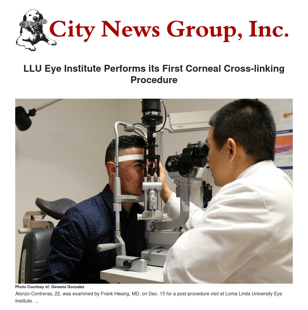 “This is currently the only treatment available to patients with keratoconus and corneal ectasia,” said Frank Hwang, MD, ophthalmologist who performed the first procedure at the Eye Institute. “The treatment was developed to prevent further progression of the disease and prevent permanent vision loss.”