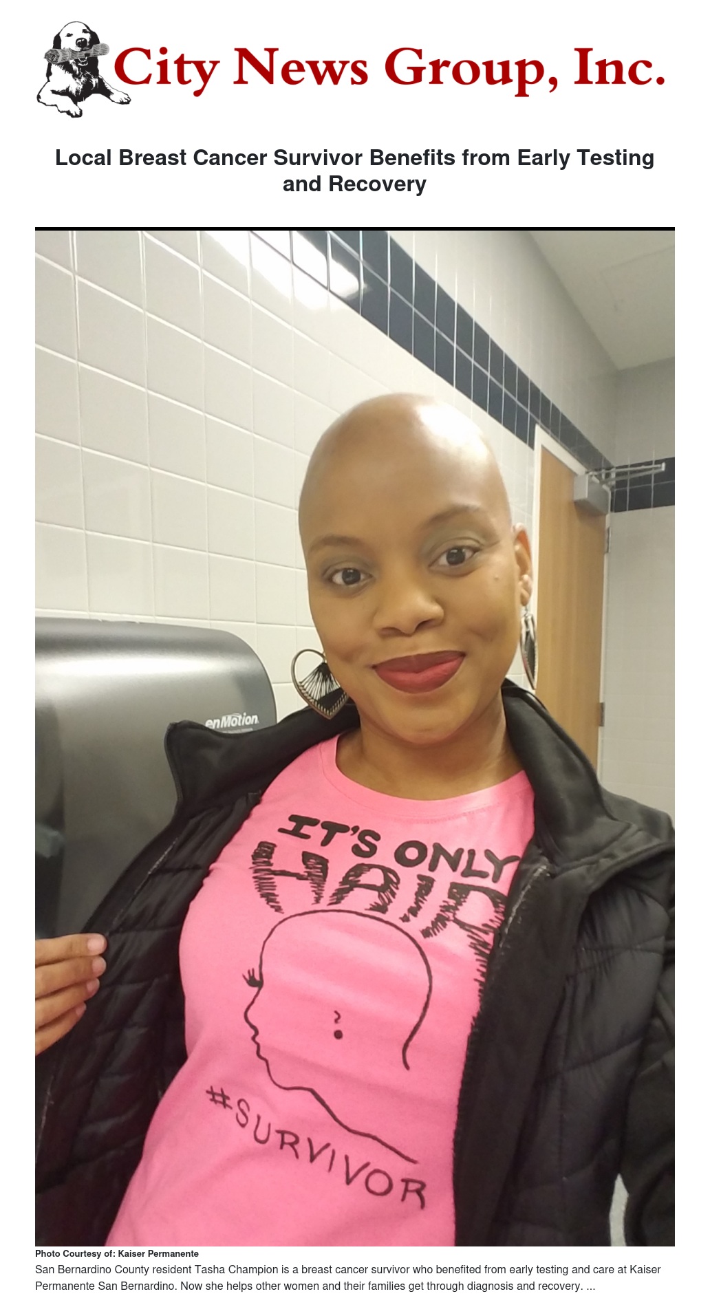 Local San Bernardino county resident Tasha Champion has a passion for helping people. She is an empowerment coach, speaker, best-selling author…and a breast cancer survivor. She helps other women and their families get through diagnosis and recovery.
