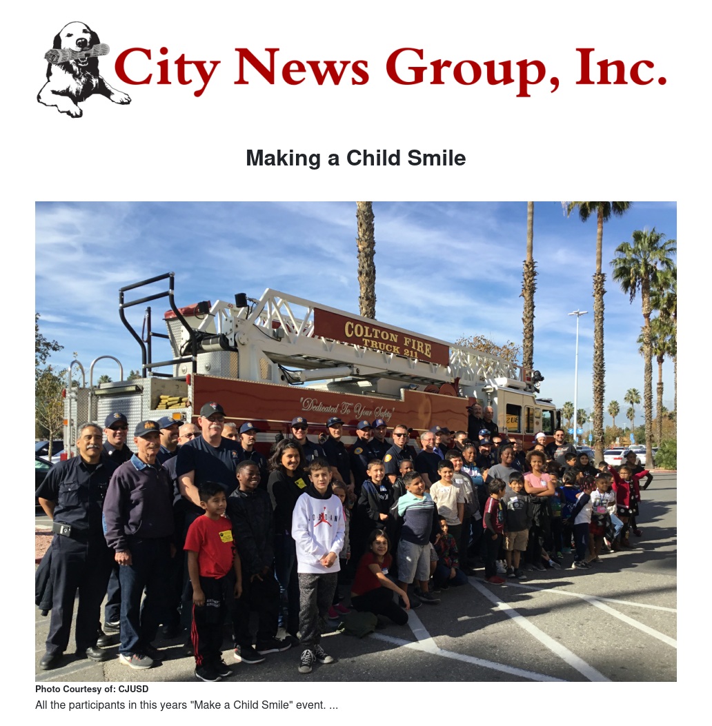 This year marks the 24th anniversary of the “Make a Child Smile” program. The Colton Fire Department, Colton Unified School District, and the Colton Wal-Mart helped make this Christmas an unforgettable one. There were a total of five schools participating, Cooley Ranch Elementary School, Alice Birney Elementary School, Paul Rogers Elementary School, William McKinley Elementary, and Woodrow Wilson Elementary School. There were 50 students that were selected to be sponsored this year. Each student received a $100 shopping spree at the Colton Wal-Mart.