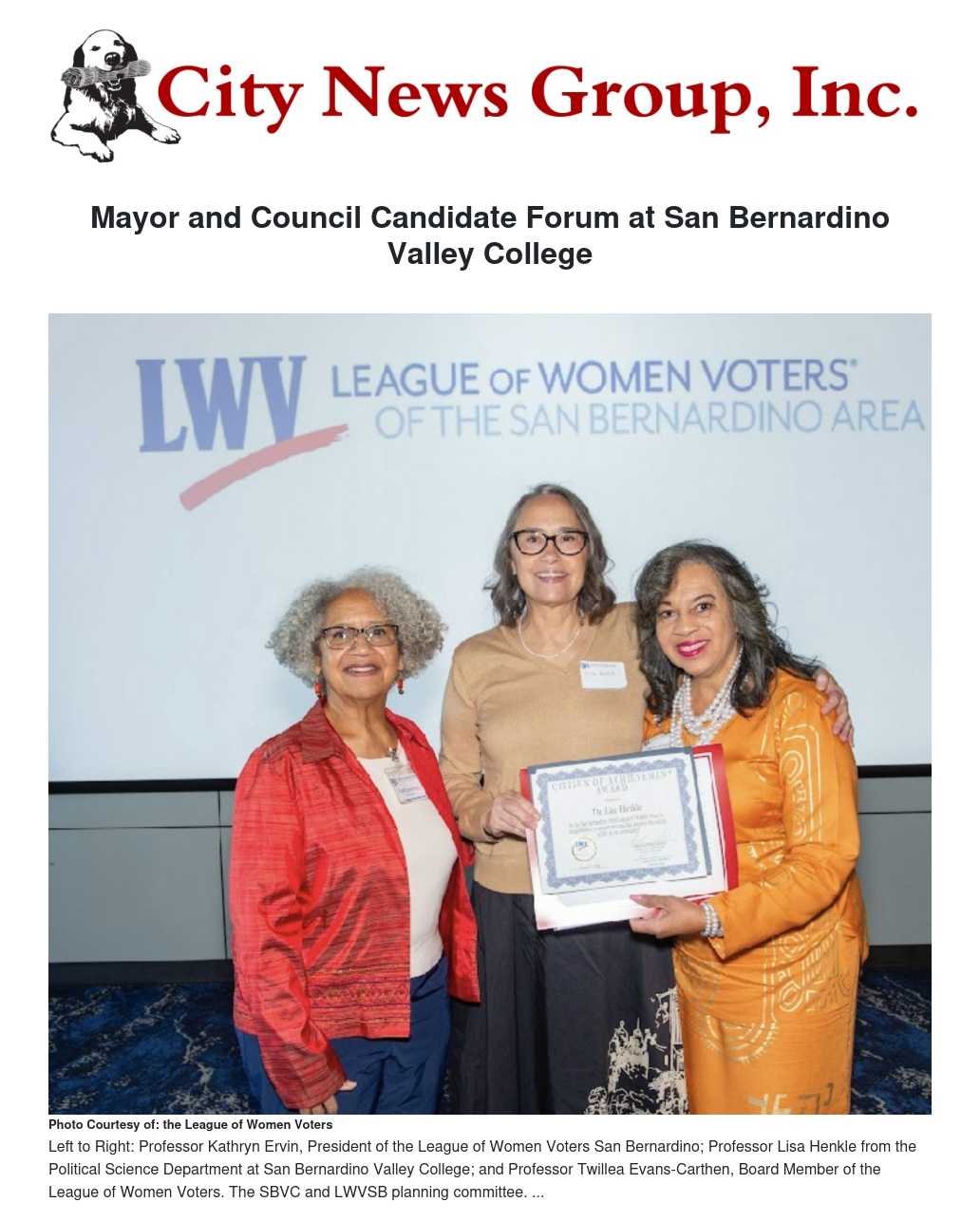 “We encourage all eligible voters to attend the forum and exercise their right to vote,” Professor Kathryn Ervin, League of Women Voters San Bernardino President.