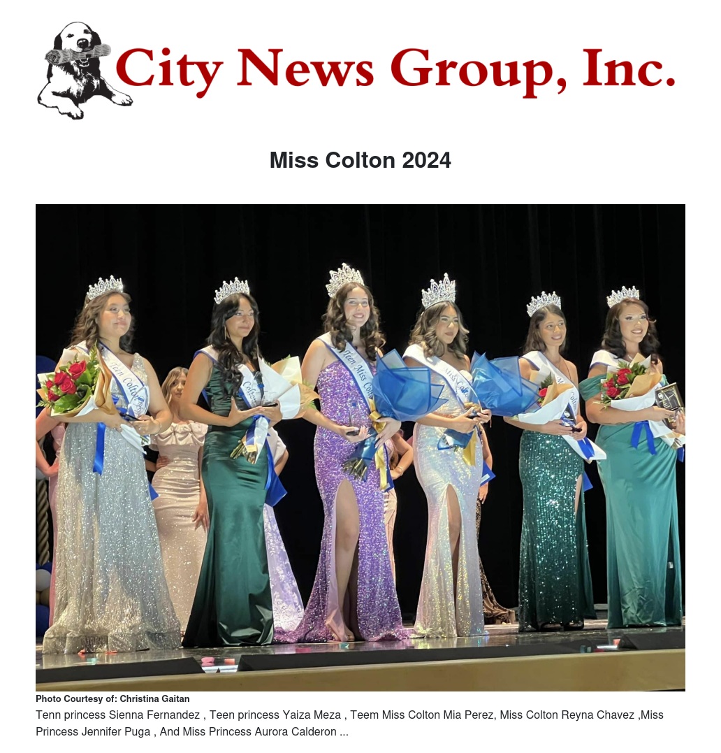 On June 22, 2024 at 3pm The 4th Annual Teen & Miss Colton Pageant was held at the Colton High School . The Colton Rotary Club did a amazing job . Many months of planning the event & days of rehearsals . The Chamber supported the pageant by volunteering and helping out anyway they could . So many beautiful gowns were worn by the young ladies . The Colton Chamber of Commerce would like to congratulate our new Queen and her royal court for 2024 .