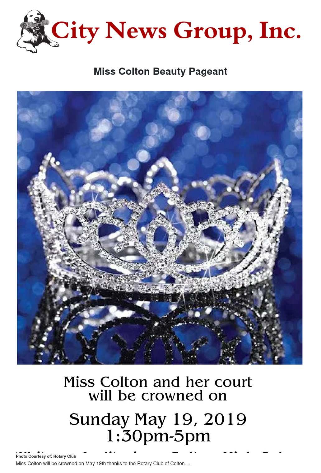 On May 19, 2019, eight young women from the Colton area will be competing for the Title of Miss Colton 2019, thanks to the Rotary Club of Colton. There has not been a new queen in Colton for over 20 years.