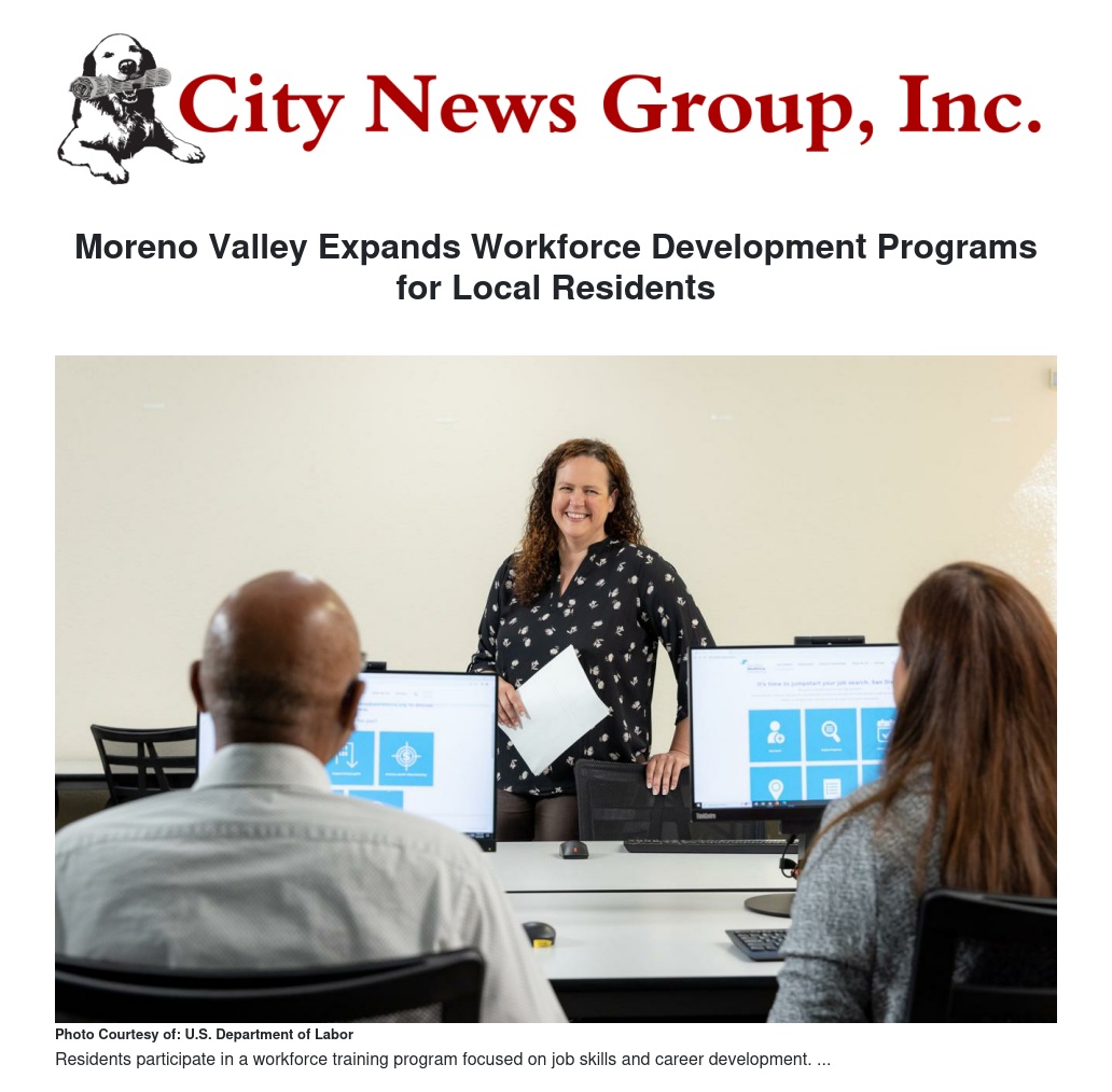 Moreno Valley Expands Workforce Development Programs for Local Residents by Stella Pierce - City News Group, Inc.