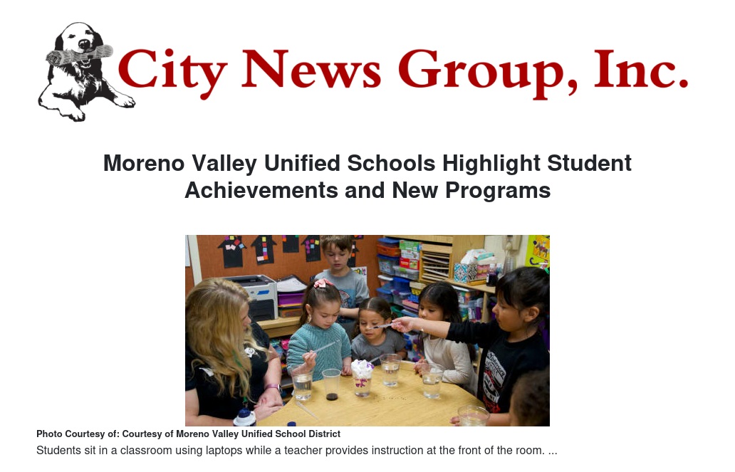 Moreno Valley Unified Schools Highlight Student Achievements and New Programs by Stella Pierce - City News Group, Inc.