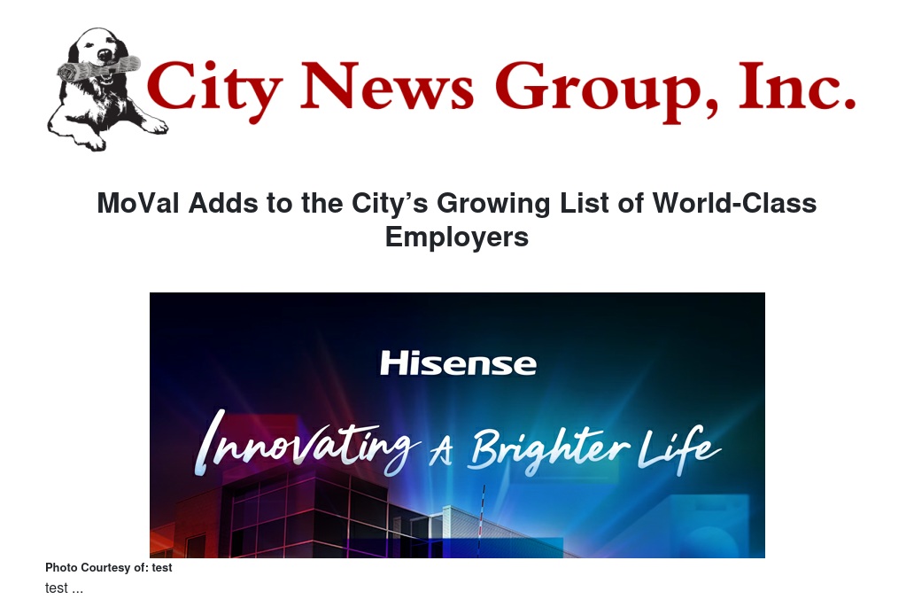 MoVal Adds to the City’s Growing List of World-Class Employers by William Cortez - City News Group, Inc.