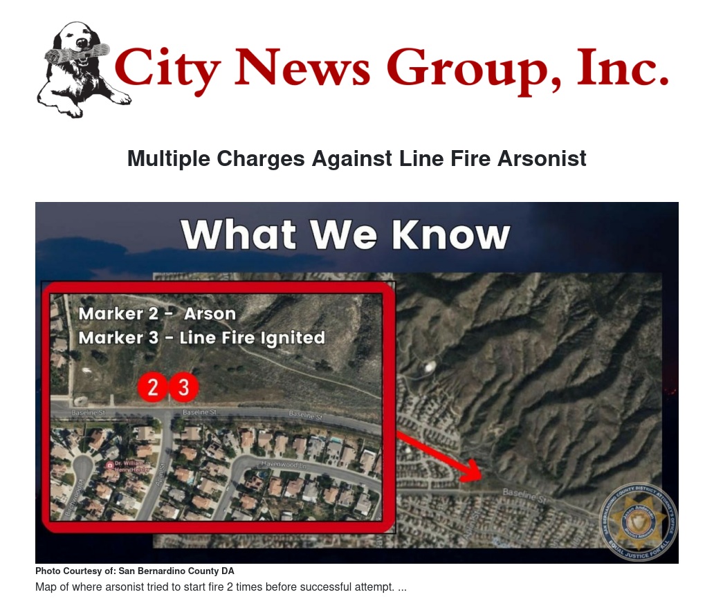 Multiple Charges Against Line Fire Arsonist by Stella Pierce - City News Group, Inc.