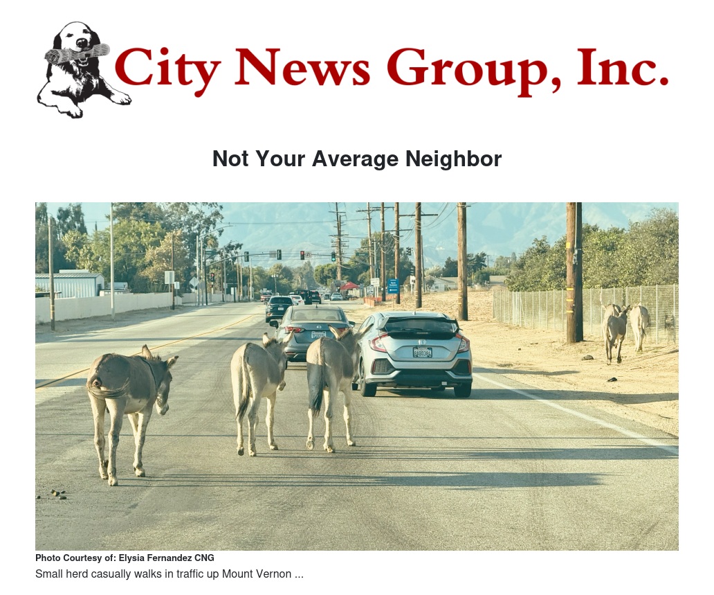 Grand Terrace is a unique city, and part of what makes it so special is our resident donkey herds. These animals are a cherished part of our community, and protected species ,but as their population grows and they move throughout the city, they present some challenges for both residents and the animals themselves.