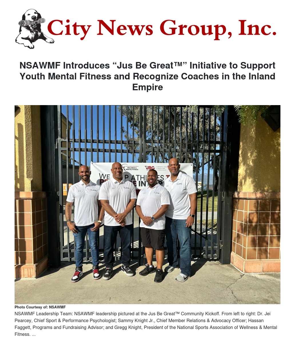 NSAWMF Introduces “Jus Be Great™” Initiative to Support Youth Mental Fitness and Recognize Coaches in the Inland Empire by Vanessa Vizard - City News Group, Inc.