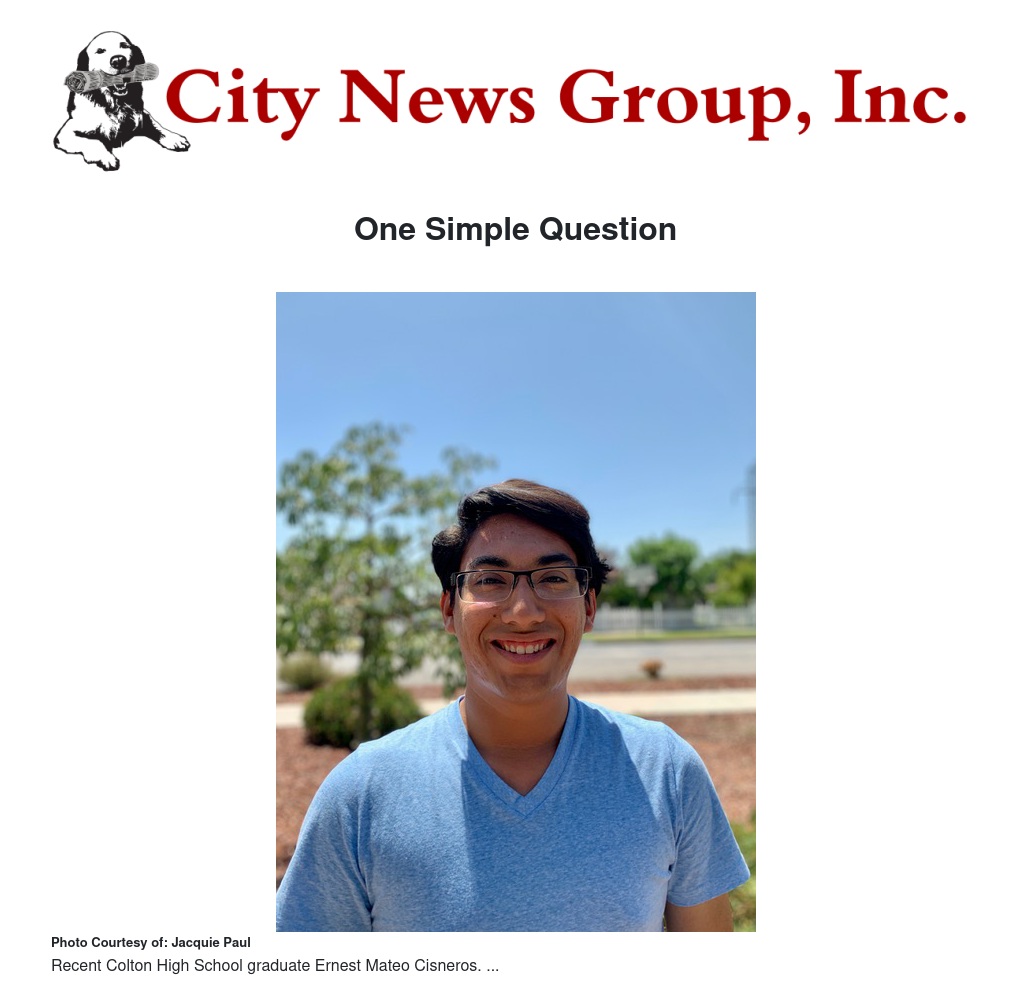Recent Colton High School graduate Ernest Mateo Cisneros and CHS Assistant Principal Jorge Alvarez have started a new website project called One Simple Question (OneSimpleQuestion.org) to help those struggling with mental health issues during this difficult time.