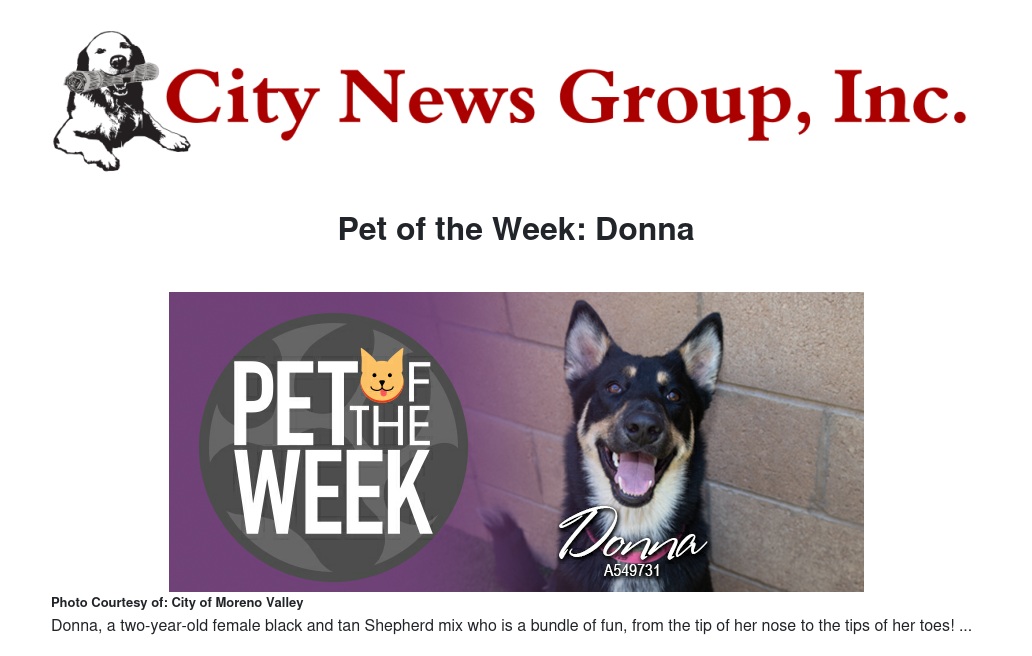 Pet of the Week: Donna by Ruby Stephenson - City News Group, Inc.