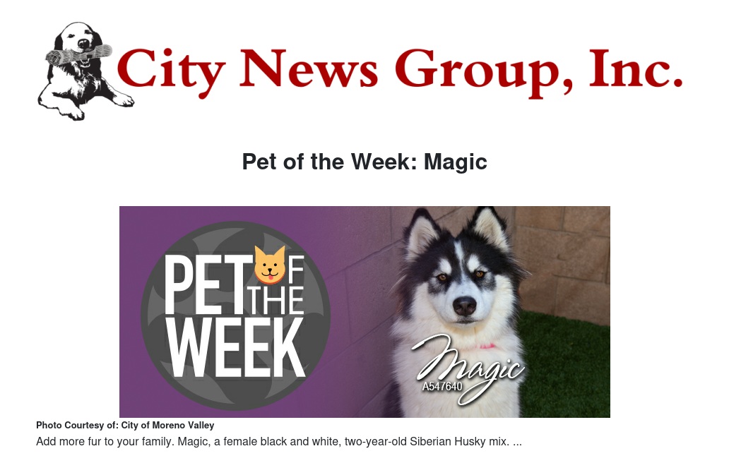 Pet of the Week: Magic by Stella Pierce - City News Group, Inc.