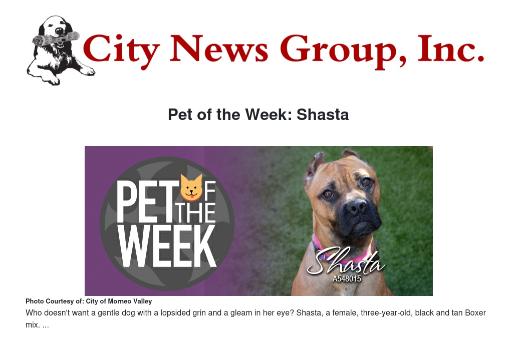 Pet of the Week: Shasta by Ruby Stephenson - City News Group, Inc.
