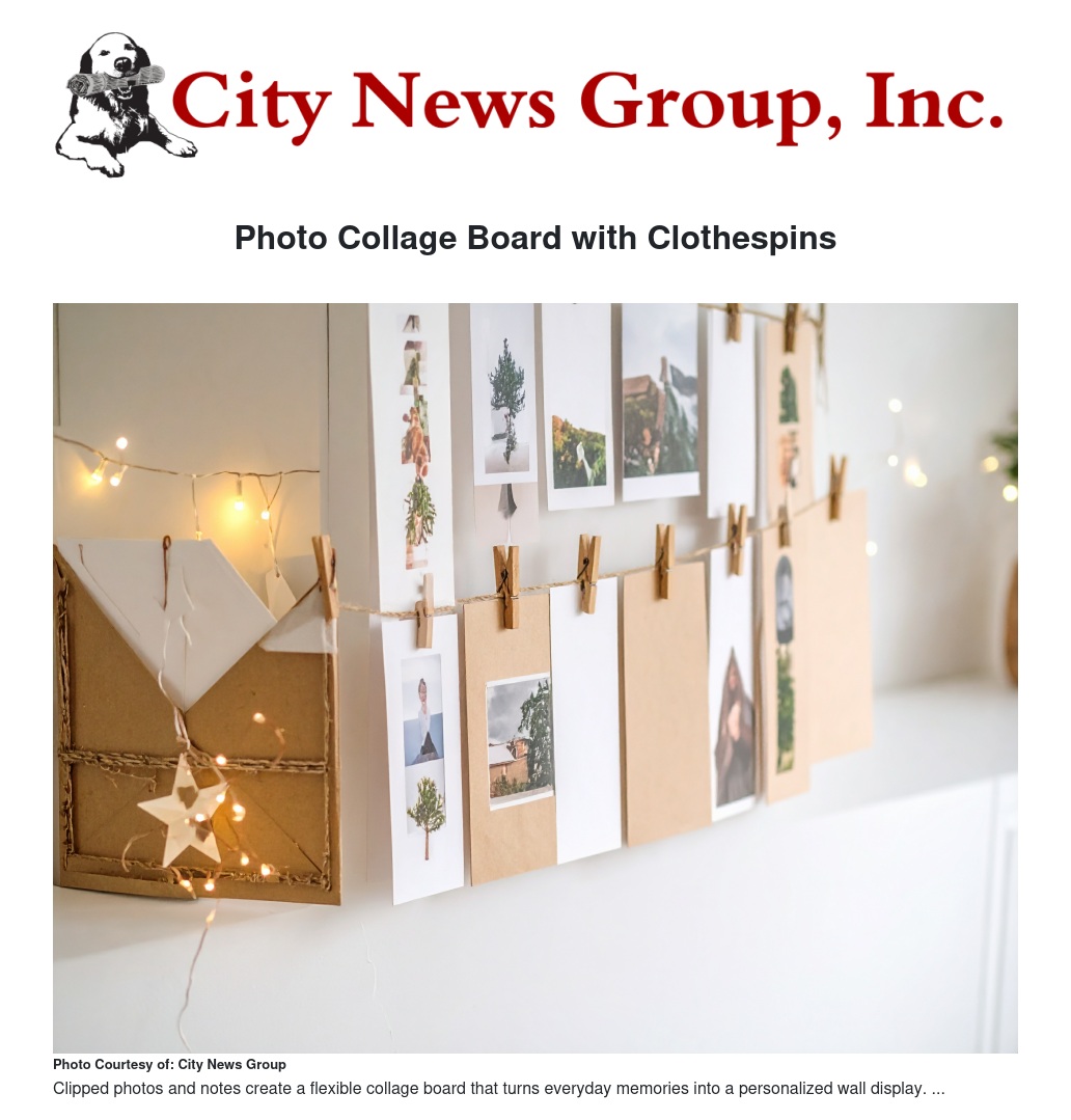 Photo Collage Board with Clothespins by Paige Mercer - City News Group, Inc.