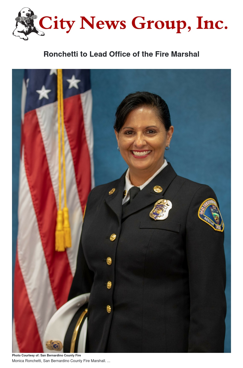 San Bernardino County Fire Chief Dan Munsey is pleased to announce the appointment of Monica Ronchetti to the position of Fire Marshal overseeing the Office of the Fire Marshal.
