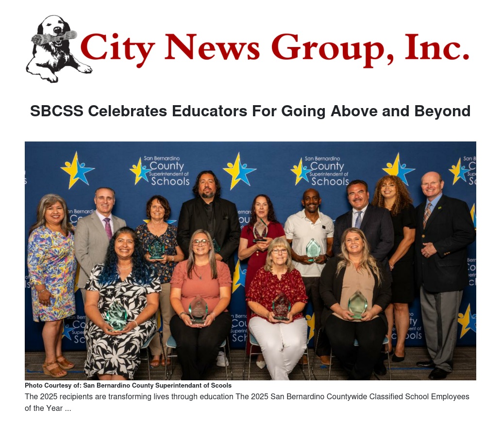 San Bernardino County Superintendent of Schools (SBCSS) proudly recognized nine recipients who were named 2025 San Bernardino Countywide Classified School Employees of the Year. This year’s honorees were recognized during a May 27 event at the Dorothy Inghram Learning Center.