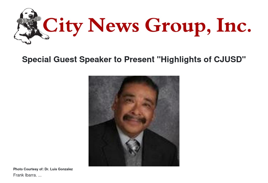 Mr Ibarra will offer snapshots of significant historical milestones with regard to CJUSD, and share his thoughts on current projects, developments and trends facing our school district today. An overview of the newly constructed CHS Athletic Stadium will certainly be included, and pique the interest of those in attendance.