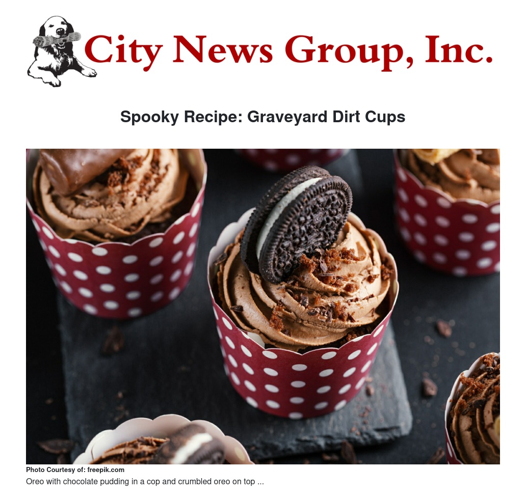Spooky Recipe: Graveyard Dirt Cups by Stella Pierce - City News Group, Inc.