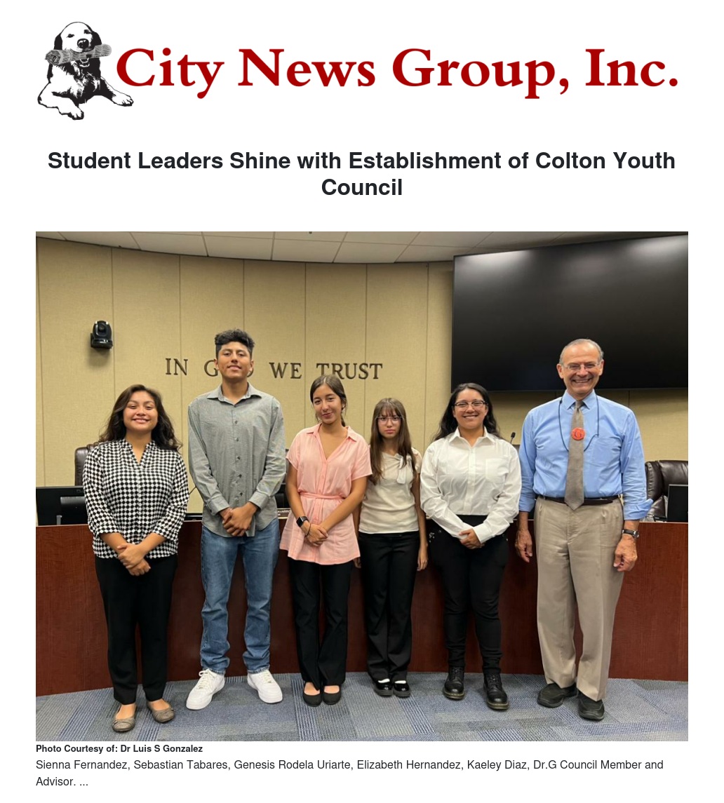 Student Leaders Shine with Establishment of Colton Youth Council by Dr. Luis S Gonzalez - City News Group, Inc.