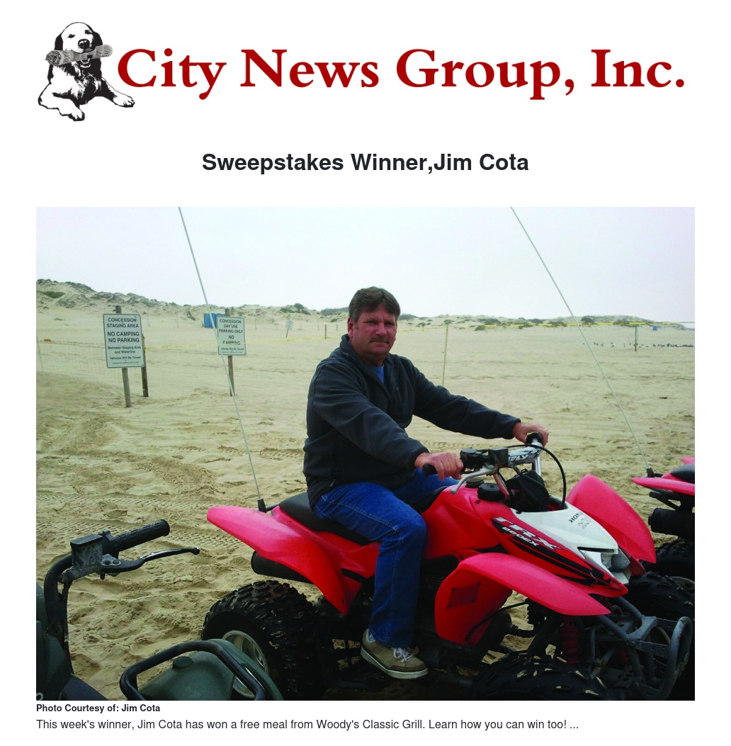 Woody’s Classic Grill was the first local business to giveaway a prize as a participator in the City News Group, Inc. Sweepstakes program, a program created to inform the community that their local businesses are still open.
