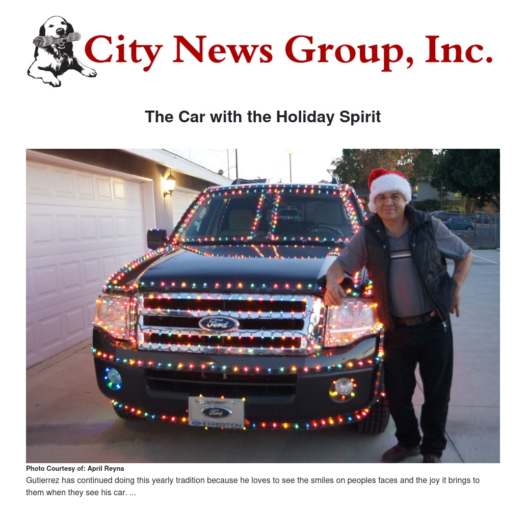 He was seen in the San Bernardino Ho Ho parade two years ago with his decorated car. He wanted to participate last year, but due to technical issues, he was unable to. However, this year he was ready. He made sure there would be no issues and was able to proudly display his lights for Christmas time.