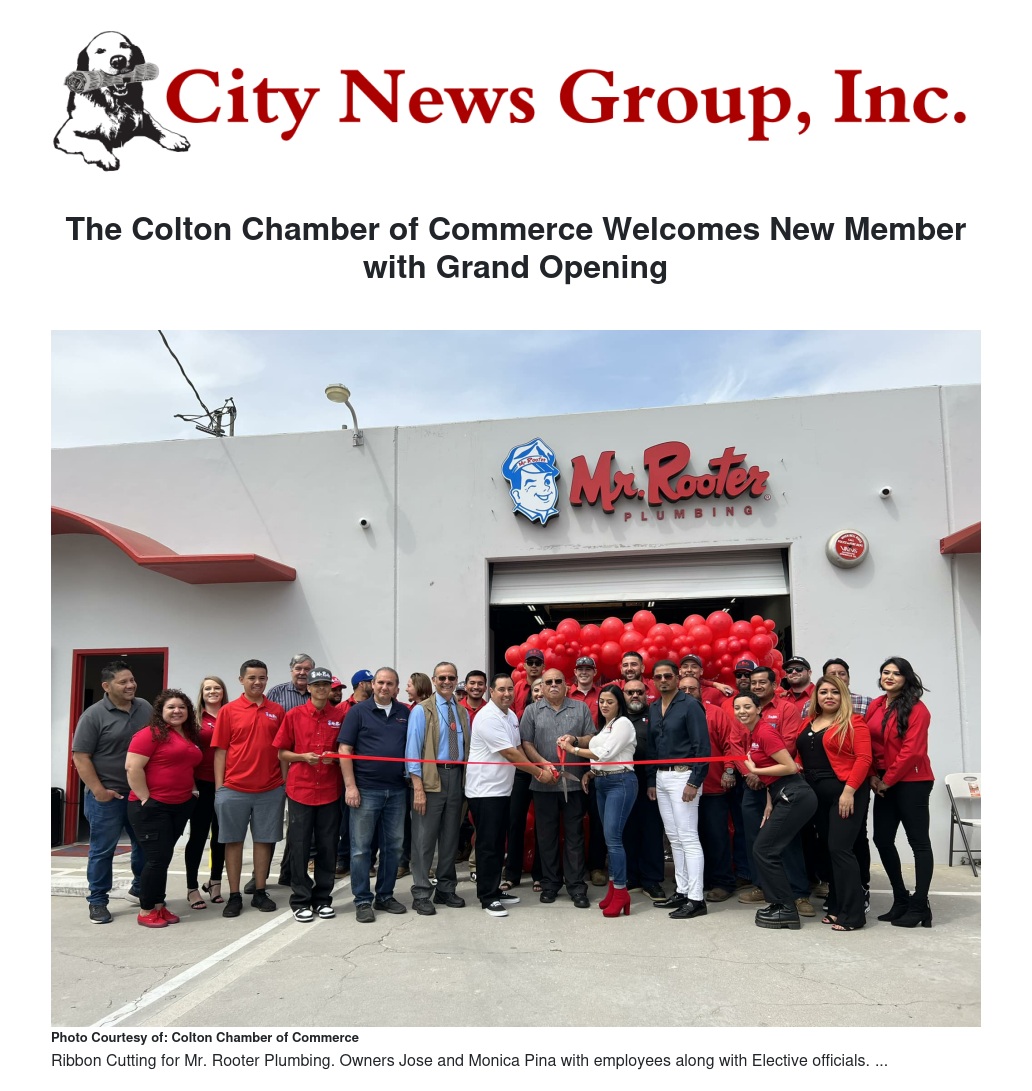 The Colton Chamber of Commerce welcomed a new member with a grand opening ceremony on April 12, 2023, at 11 am. In the city of Colton, Jose and Monica Pina are the new owners of the business Mr. Rooter Plumbing.