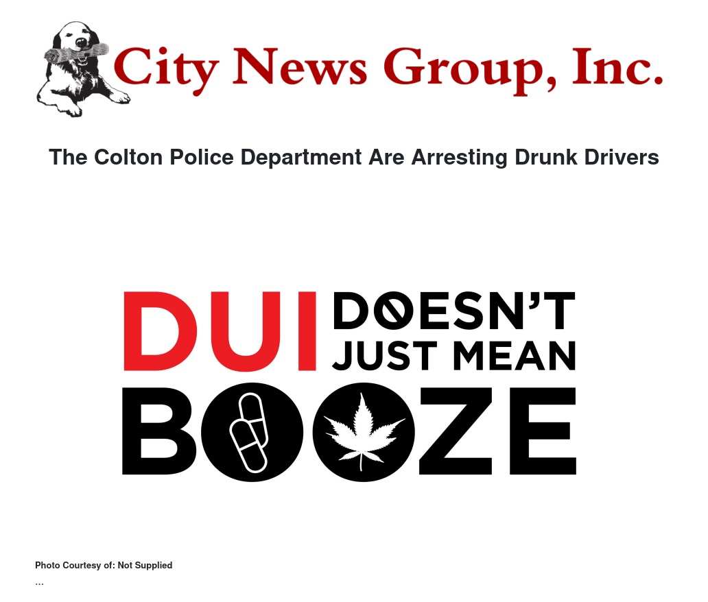 As part of the enforcement campaign period, police, sheriff and the CHP will be deploying DUI Checkpoints and DUI Saturation Patrols during the upcoming DUI crackdown throughout the region. Colton PD is conducting a DUI Checkpoint with numerous saturation patrols scheduled for the next few months.