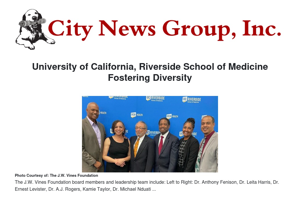 The University of California, Riverside School of Medicine will host the annual J.W. Vines Diversity, Equity, and Inclusion Colloquium on Tuesday, August 19, 2025. The event will feature a keynote address by Dr. Medell Briggs-Malonson, MD, MPH, MSHS, a nationally recognized leader in health equity and the Chief of Health Equity and Inclusive Excellence at UCLA Health System.