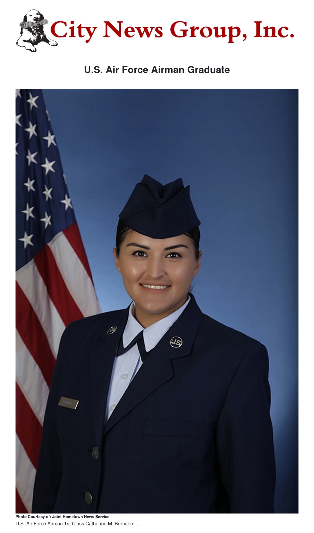 U.S. Air Force Airman 1st Class Catherine M. Bernabe graduated from basic military training at Joint Base San Antonio-Lackland, San Antonio, Texas.