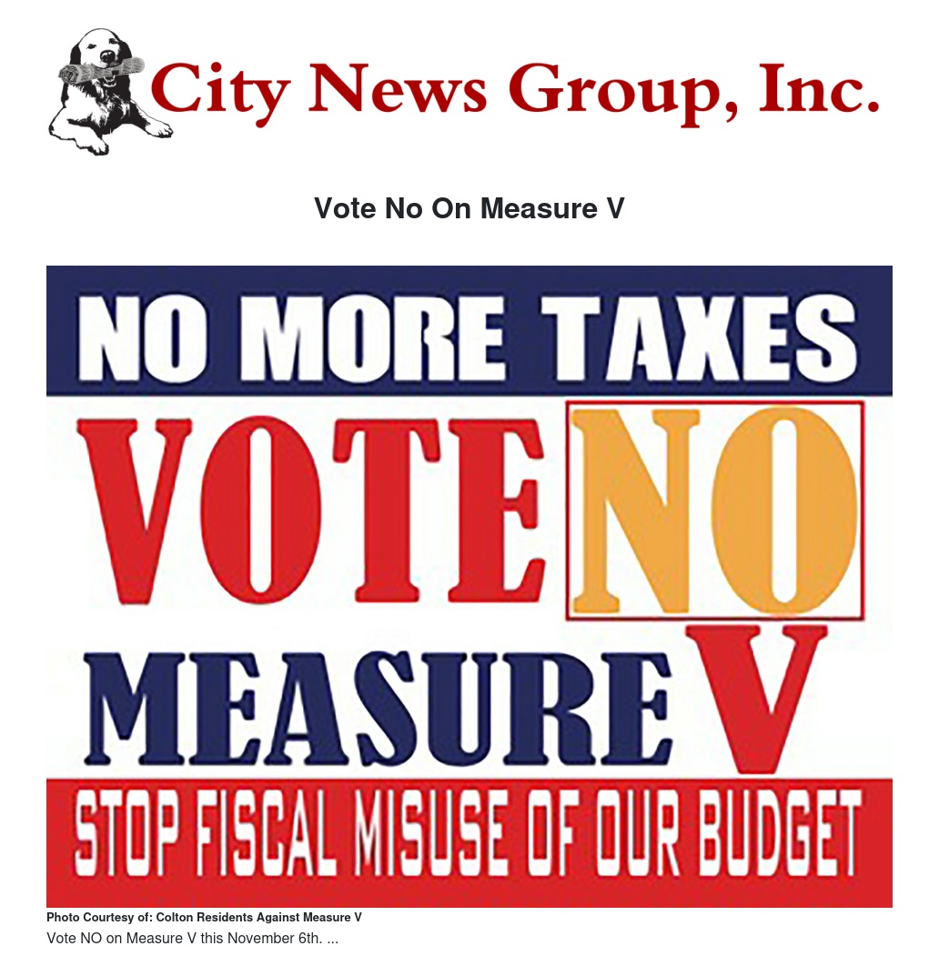 Vote No On Measure V by Colton Residents Against Measure V - City News Group, Inc.